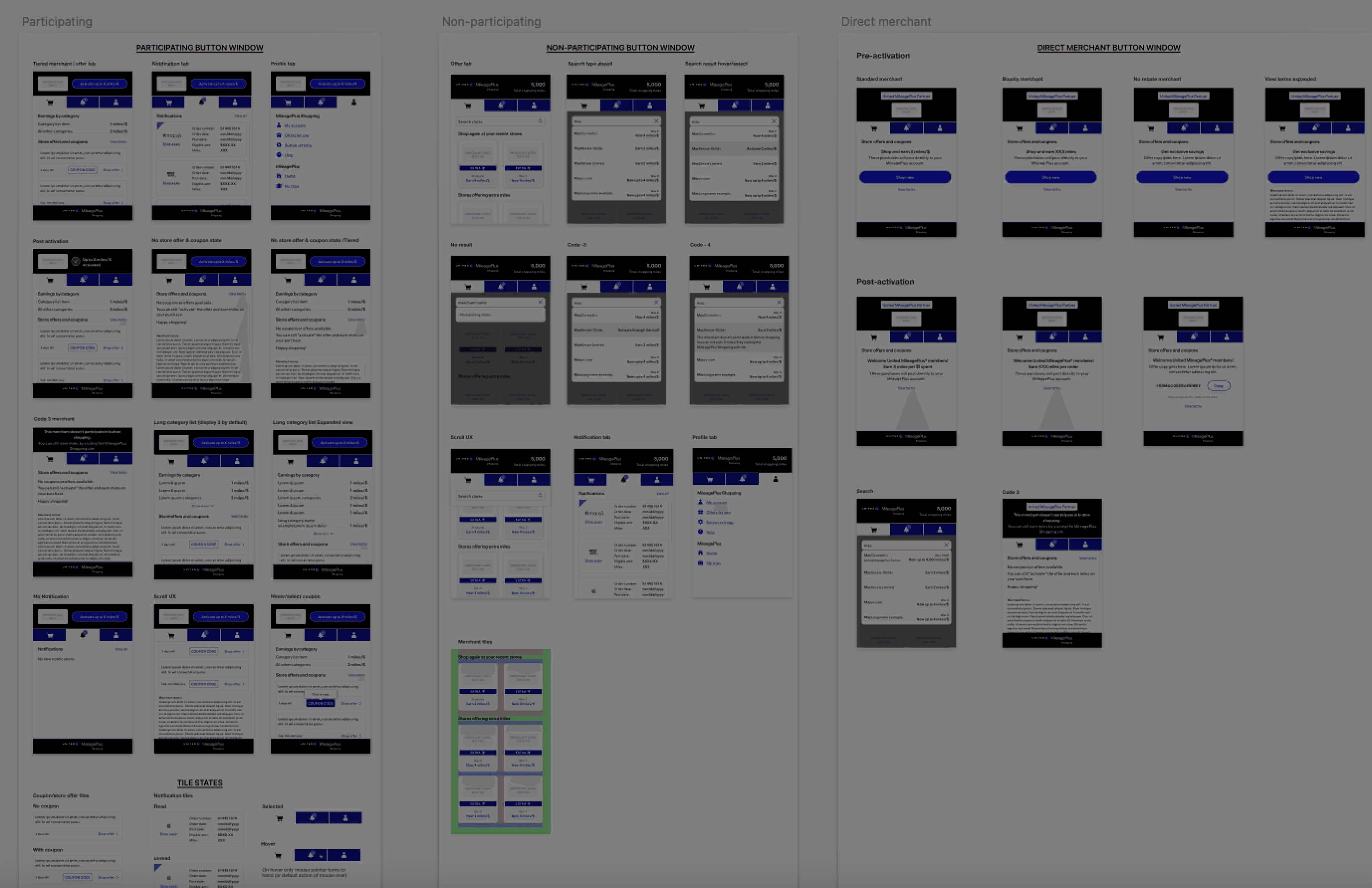 I led end-to-end UX and visual design for multiple browser extension experiences, working closely with product and engineering to design patterns that were technically feasible, easy to maintain, and effective across different merchants and partner programs. I designed browser extensions that surface rewards and savings at the moment of purchase—operating within tight technical constraints while still delivering clarity, trust, and real value. This work required translating complex platform logic into lightweight, highly contextual experiences that feel seamless rather than intrusive.